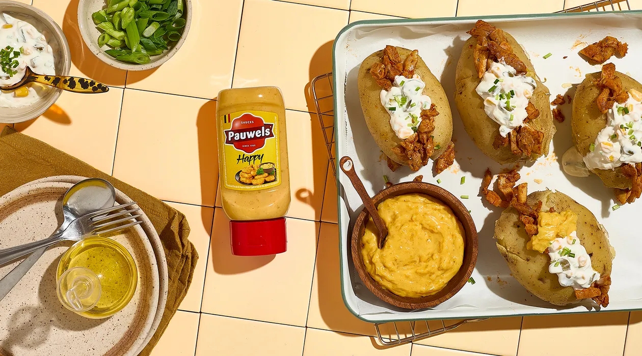 Wanneer de dagen korter worden en de kou buiten voelbaar is, smaakt comfortfood dubbel zo goed. Deze gevulde aardappelen met kip en Happysaus zijn het ideale herfst- en wintergerecht. De krokante schil, de smeuïge vulling en de zachte Happysaus maken dit gerecht de ideale opwarmer.