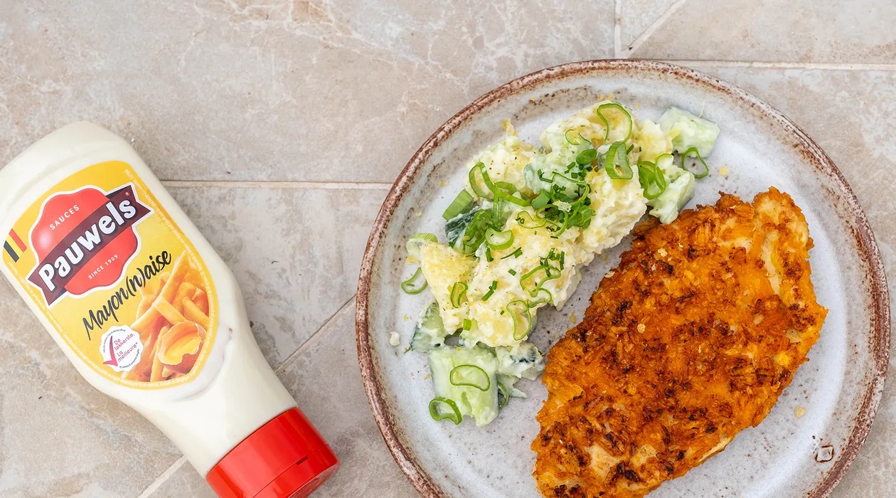 Lekker messy koken doe je met onze Mayonaise! Jelle Beeckman en zijn broer Hans toverden een kipschnitzel met aardappelsalade op tafel. Snel en lekker, precies hoe wij het graag zien! 😋
